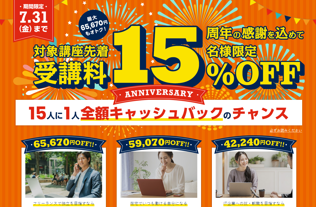 並行して就職活動をしてもいいとは思いますが、受講が修了した後に就活を考えている場合は7月のキャンペーンがラストチャンスでしょう。