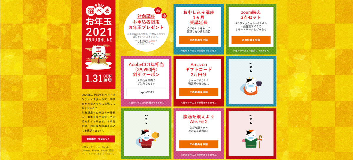 今年は選べるお年玉2021年 デジハリONLINE(1月)