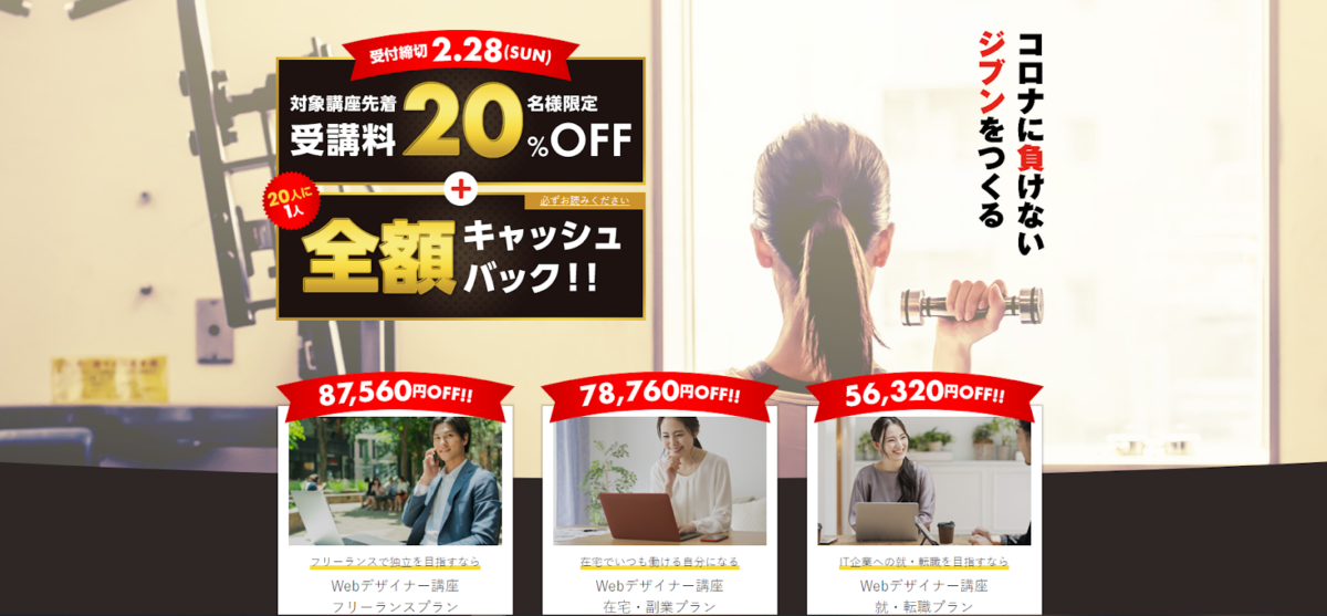 最安値のWebデザイナー講座 就転職プランでも28,160円の割引を受ける事ができます。