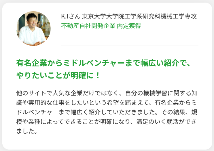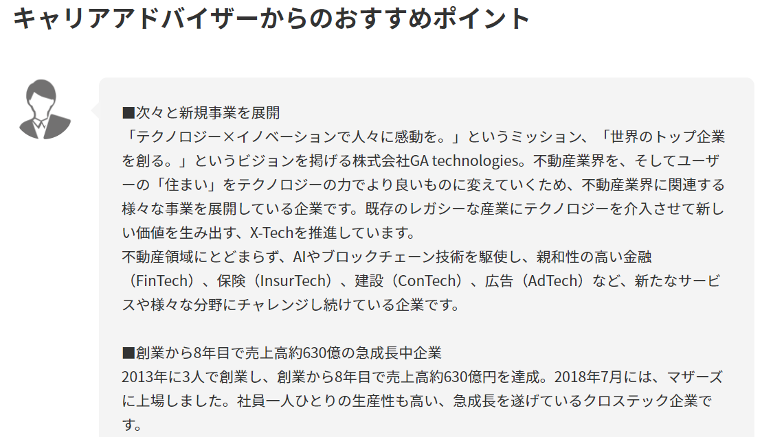メガベンチャーから最先端領域の急成長企業まで成長力のある企業に厳選して紹介しているので、ベンチャーに行きたくないという人にはおすすめできません。