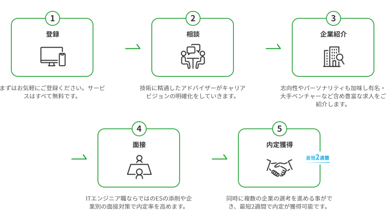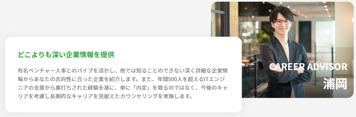 自分の専門知識を活かしたいというITエンジニア職ならではの対策をしてくれるので、その企業の内定率が高まります。