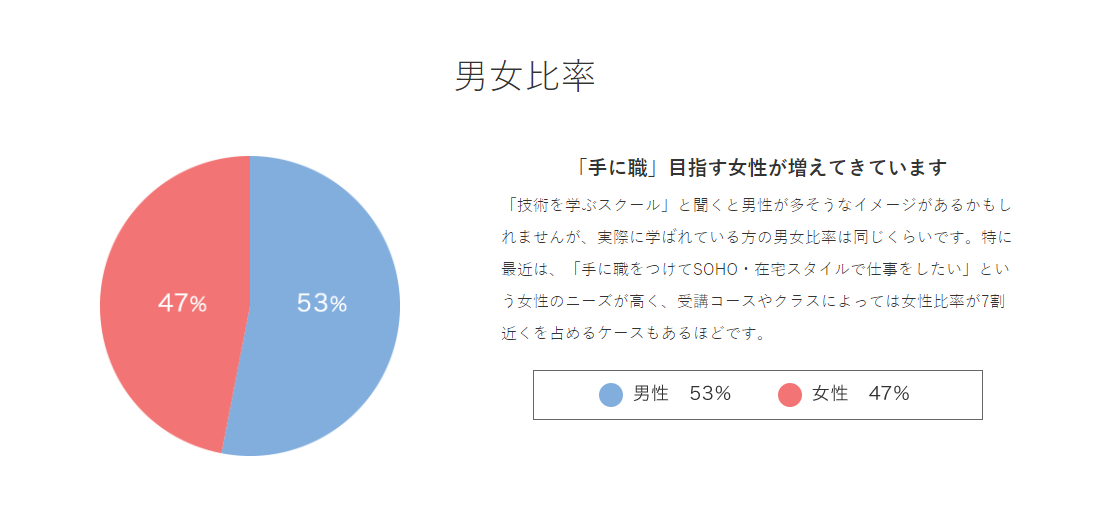 デジハリONLINEはどのような方が受講したかを比率で公表しています。