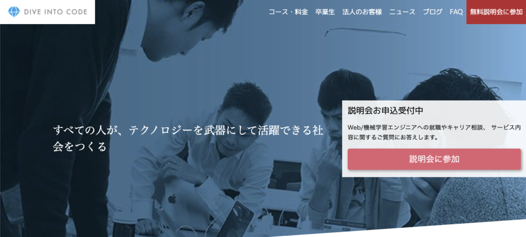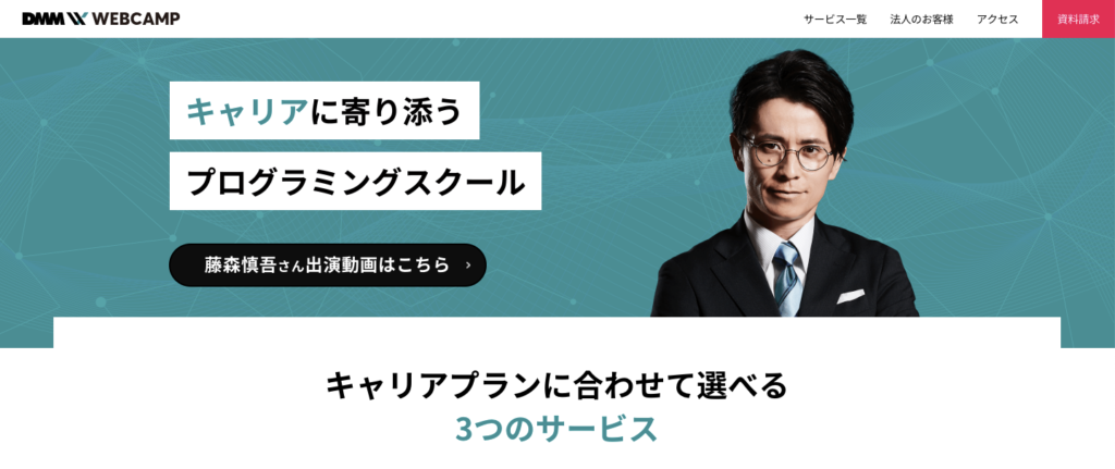 DMM WEBCAMPは通学・オンラインのどちらでも選択可能なプログラミングスクールです。フルタイムのコミット型学習で最短3ヶ月でエンジニアに転職できるとうたっています。こちらのCOMMIT 専門技術コースも経済産業省の第四次産業革命スキル習得講座に認定されています。