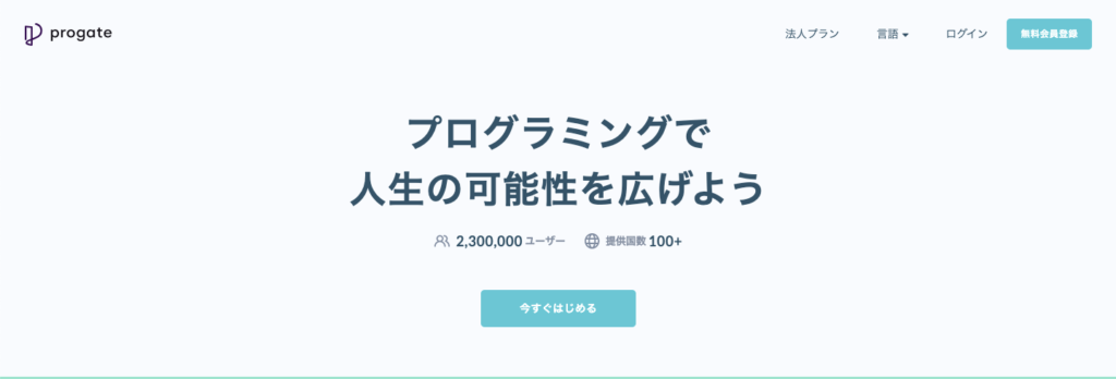 Progateは、Web上でプログラミングを学ぶことができるオンラインサービスです。HTML&CSS、JavaScript、PHPなど、多数のプログラミング言語を学ぶことができます。一部は無料で、そして、難易度が高いプログラミング学習コンテンツなどは有料となっています。