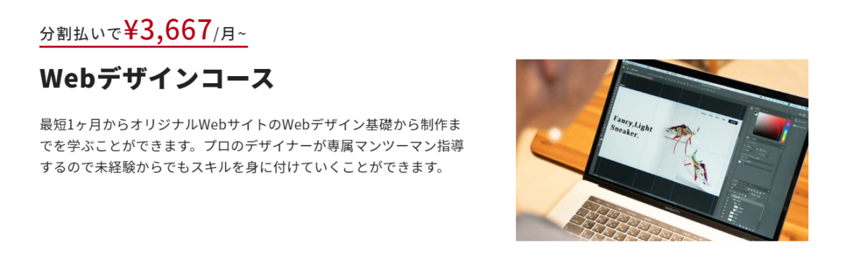 最短1か月でWebデザイナーとして必要なスキルを習得できるコースです。
