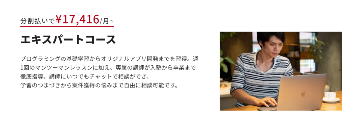 エキスパートコースは、「花形ITベンチャーで私服勤務」的なキャリアに興味のある人におすすめのコースです。