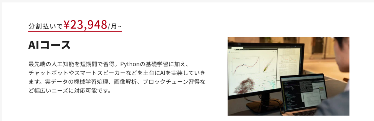 AIコースは、最先端のテクノロジー企業で研究開発のキャリアを目指したい方におすすめのコースです。