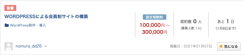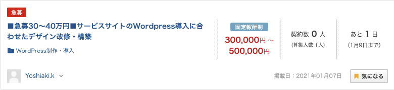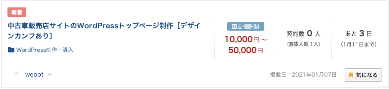 クラウドワークスでは1~5万円の数日で完成しそうな案件から、1からサイトを制作する10~30万円の案件がありました。毎月1~2件受注することで副業収入10万円を達成することができそうです。