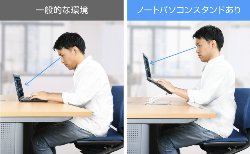 そのため、パソコンスタンドなどを活用しない場合は目線が下になります。