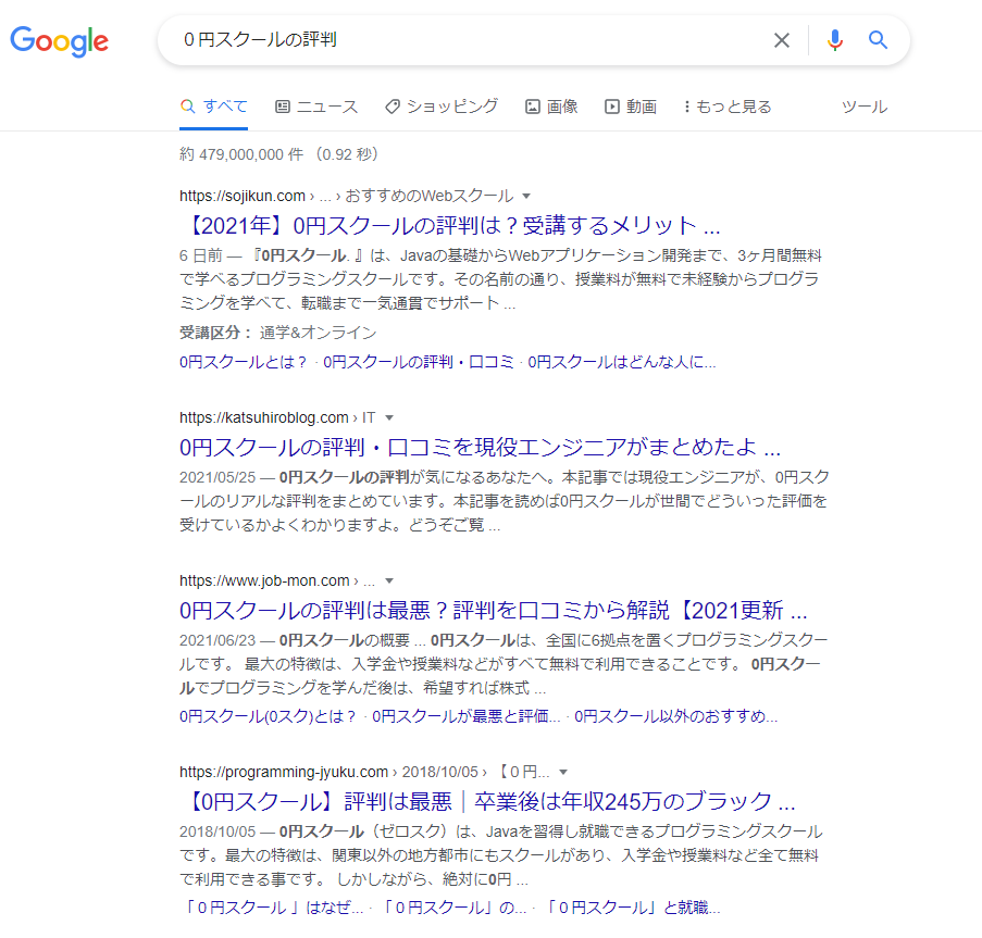 0円スクールの評判で調べると最悪だと称される記事が上の方に表示されます。